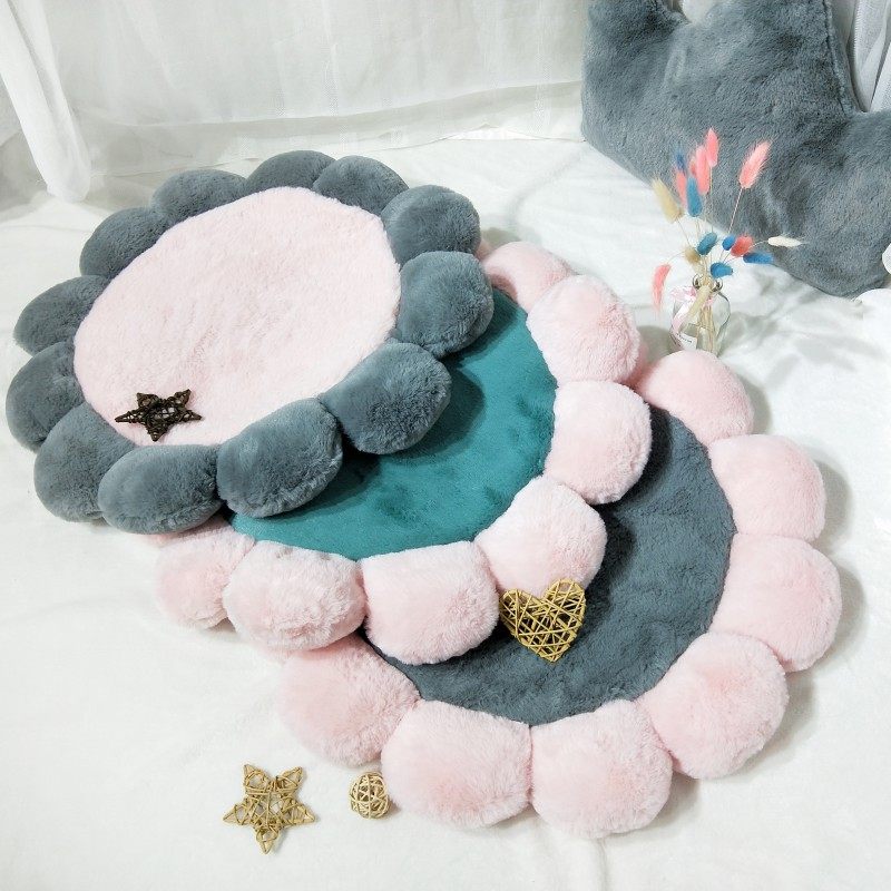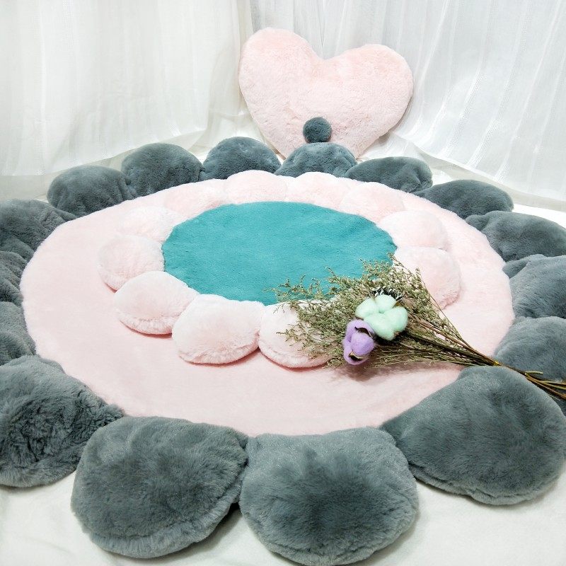新款ins北欧风软糯兔兔绒太阳花坐垫圆形地垫毛绒宝宝房样板房装