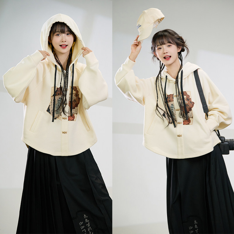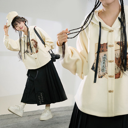 锦灰堆卷 清水溪汉初国风卫衣女秋冬汉元素加绒百搭连帽重磅日常