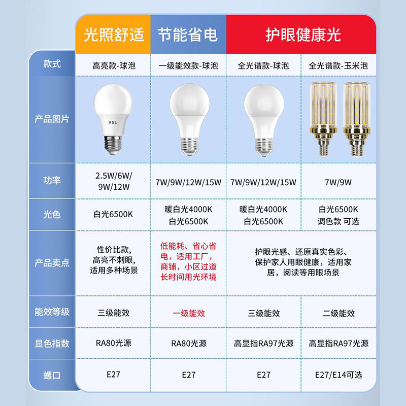 佛山照明led灯泡e27螺口一级能效