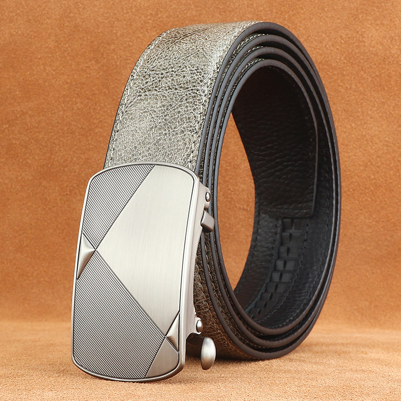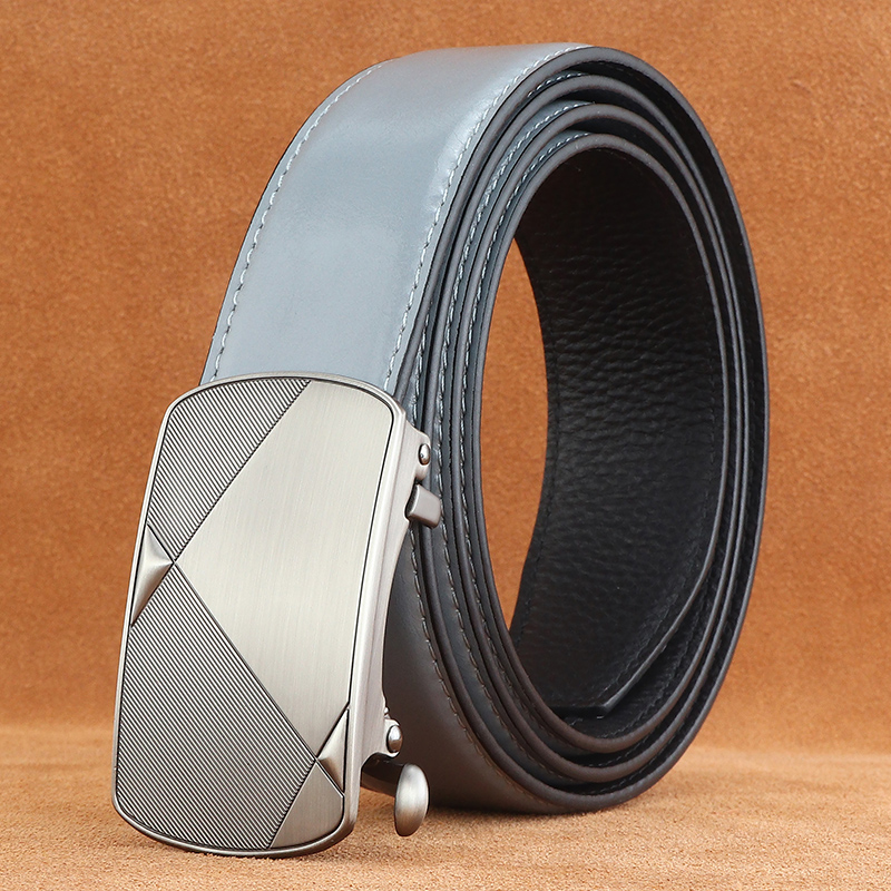 皮带男士简约真皮浅色内穿休闲自动扣腰带内扣潮流百搭蓝色裤带