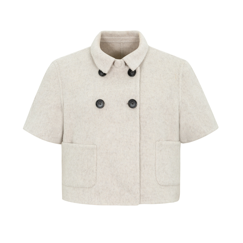 dorydory 短袖灰色双排扣双面呢大衣女短款小个子羊毛毛呢外套冬