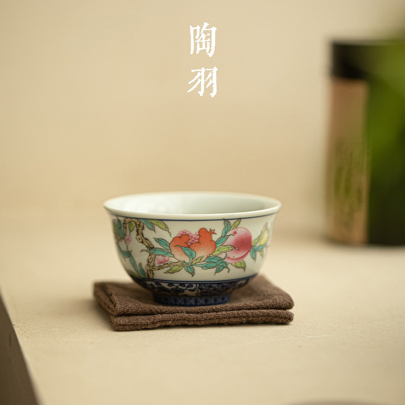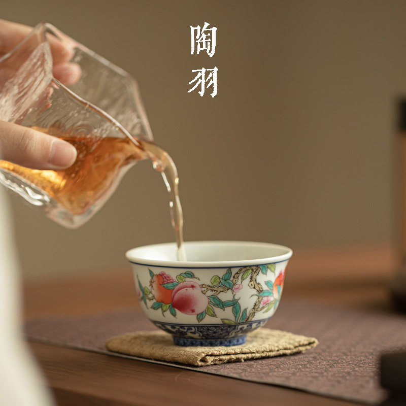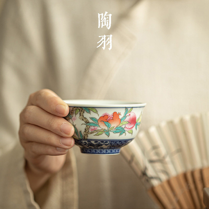 仿古瓷九桃陶瓷茶杯家用主人杯