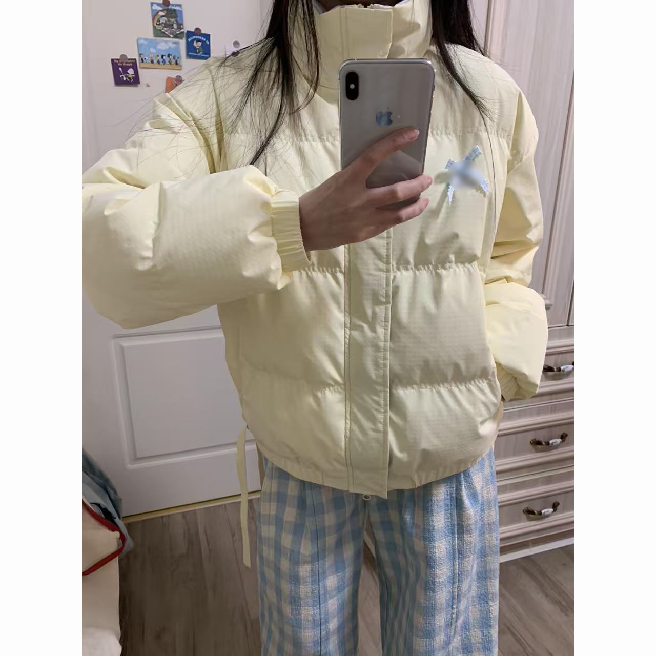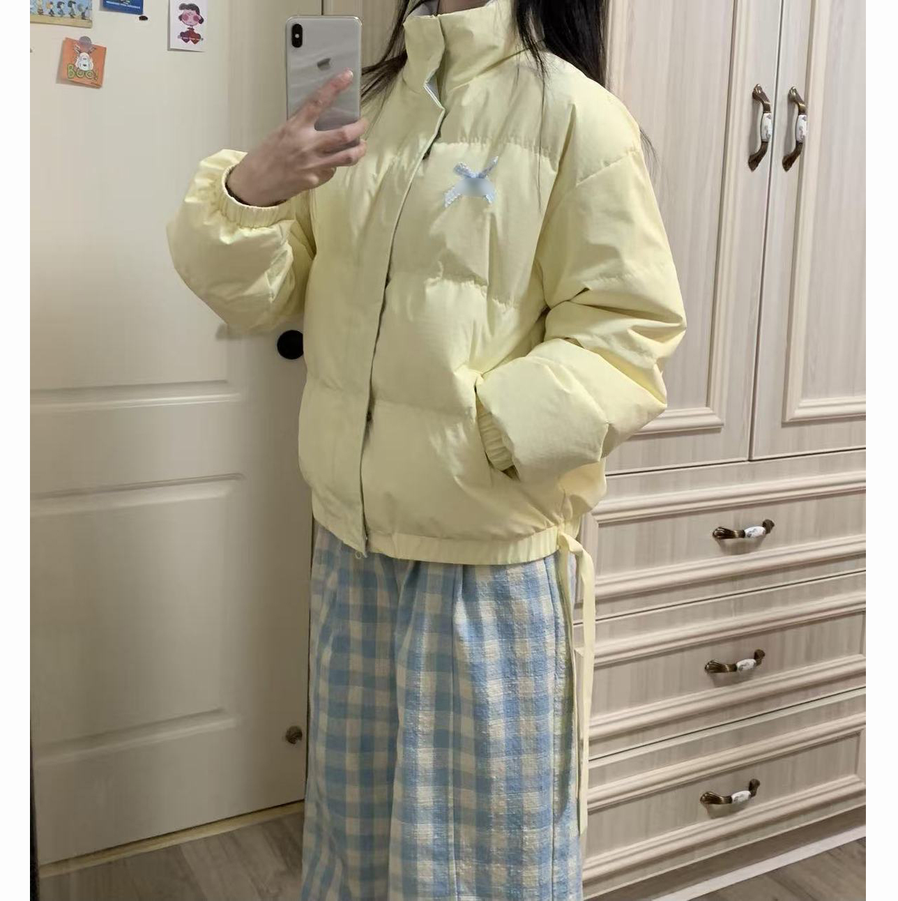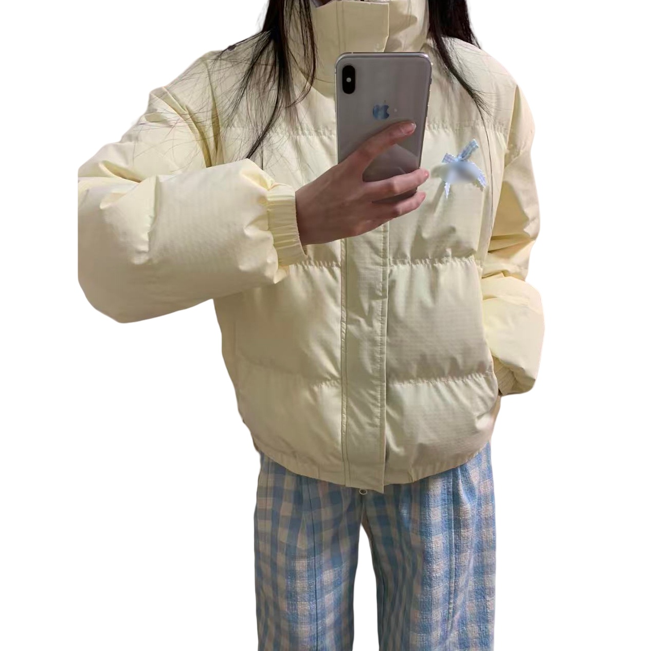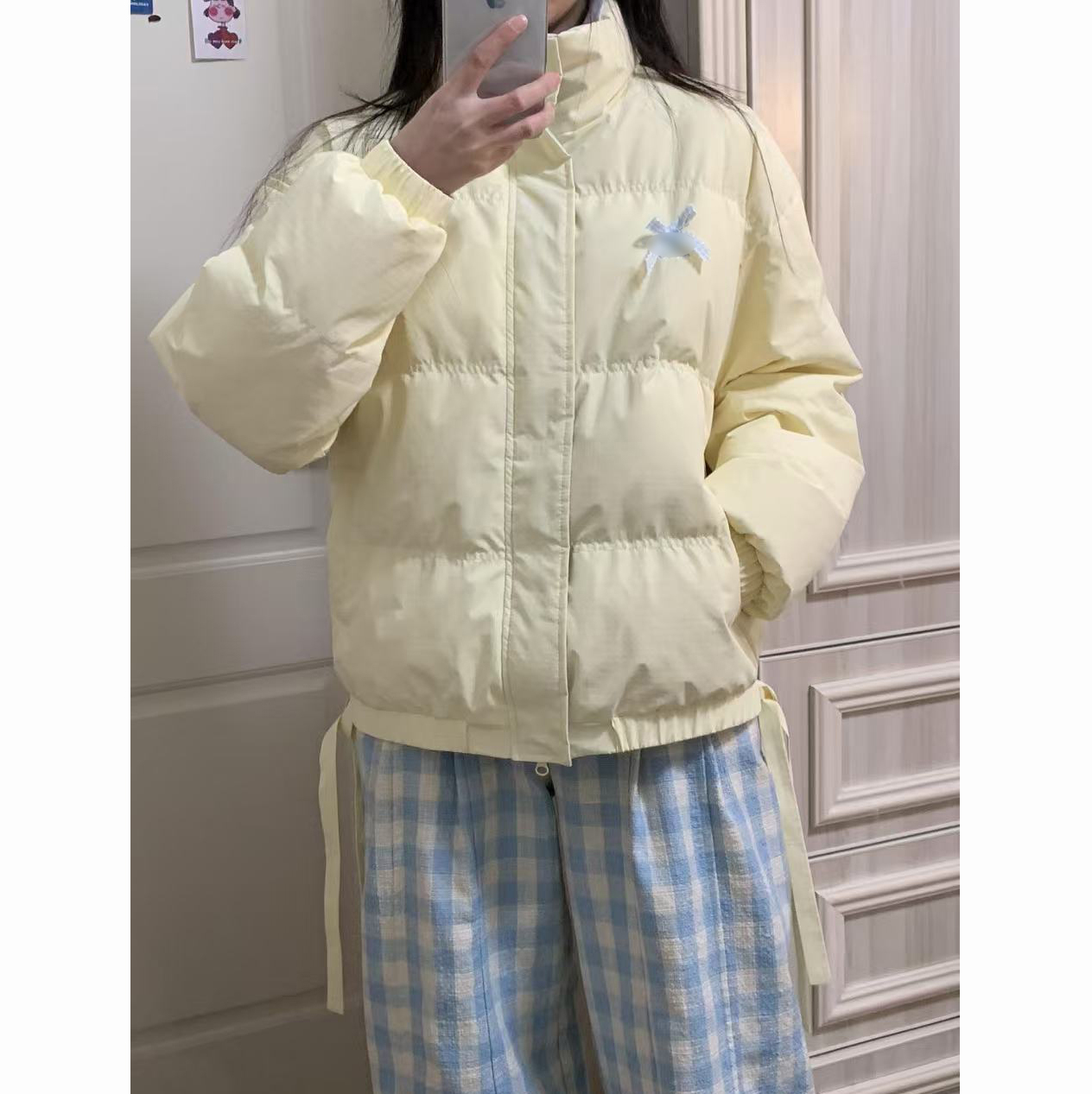 多巴胺甜美少女秋冬季蝴蝶结宽松防寒棉服立领奶黄色面包服外套女