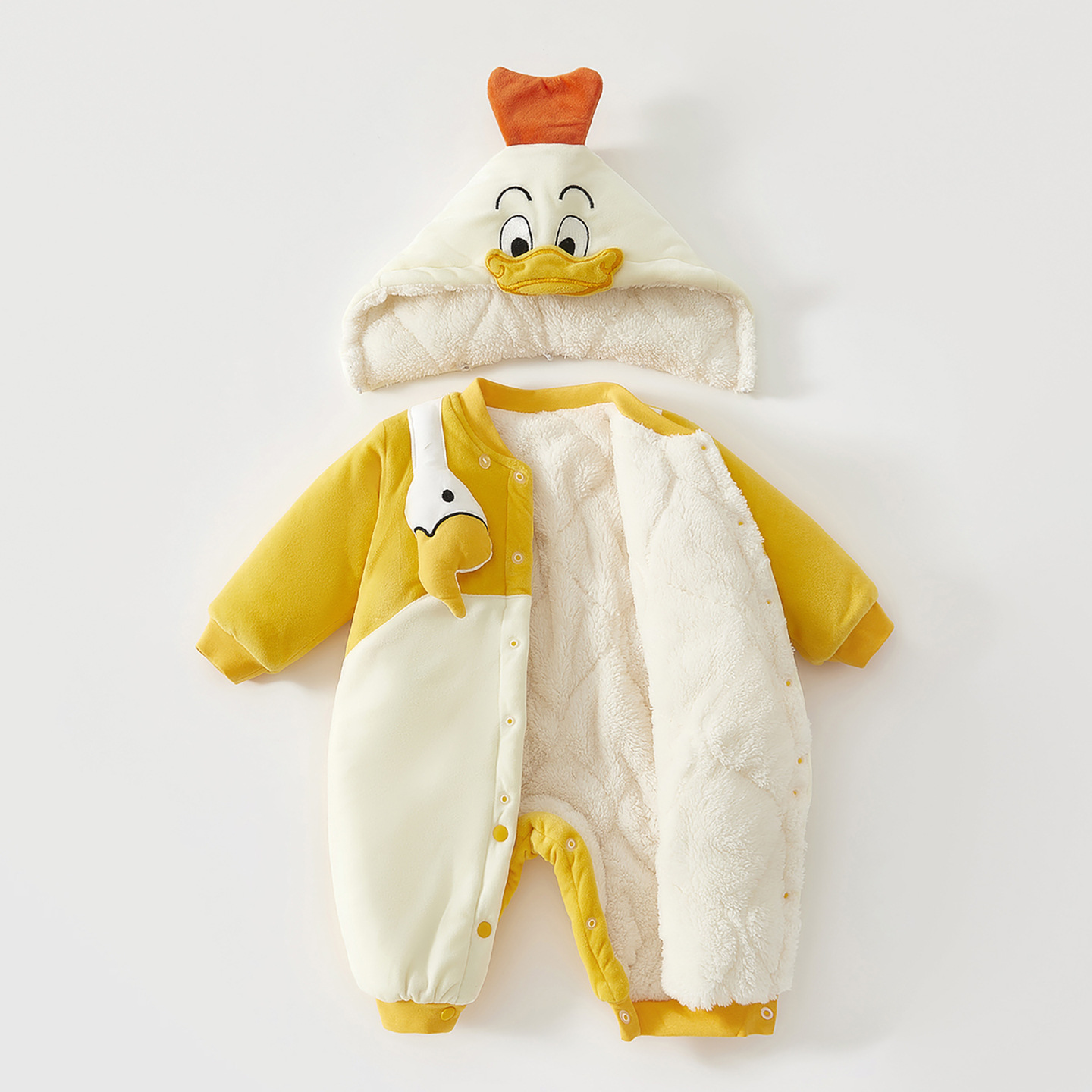 婴儿冬季加厚保暖连体衣新生儿夹棉外出棉袄男女宝宝卡通外出哈衣