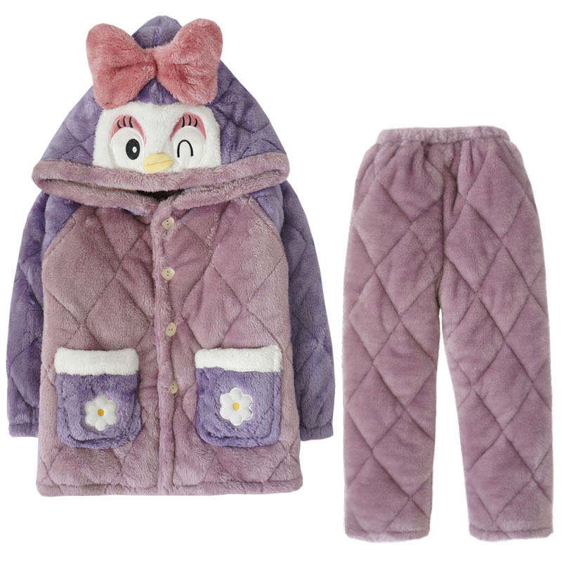 秋冬季儿童睡衣男童法兰绒女孩夹棉中大童家居服女童珊瑚绒加厚款