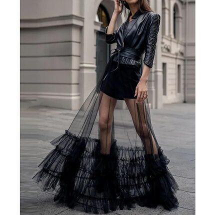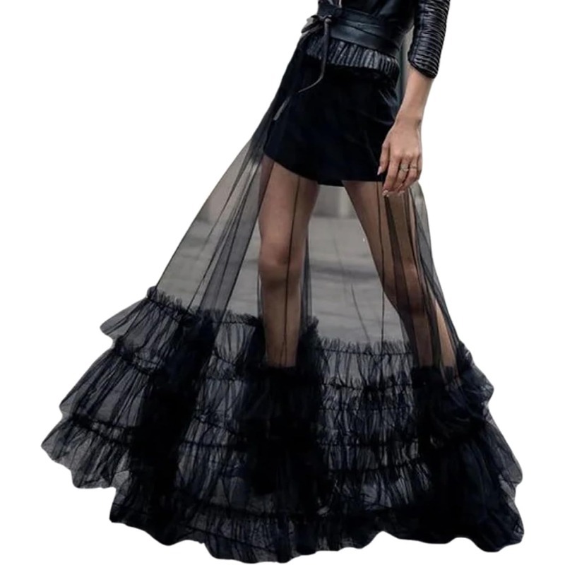 2025女新款法式复古网纱透视裙百褶拼接长裙舞台表演网纱半身裙