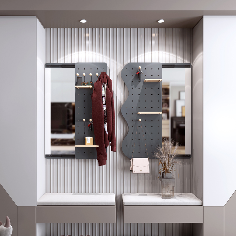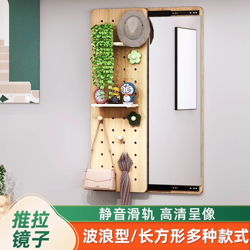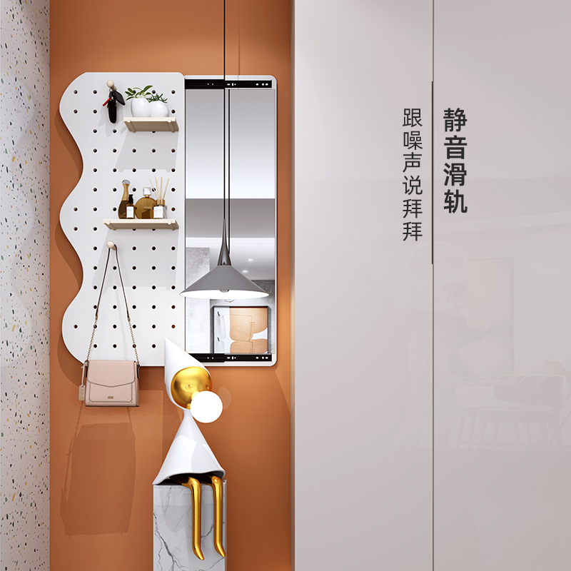 隐形穿衣镜推拉关闭隐藏全身镜子贴墙衣帽架壁挂洞洞板玄关试衣镜