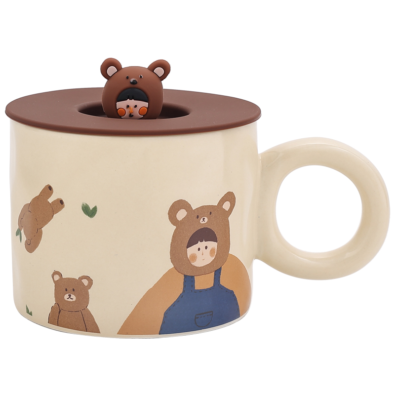 熊谷组陶瓷可爱带盖马克杯