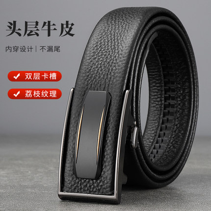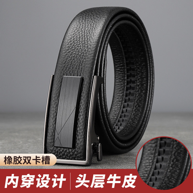 加长皮带内扣男士自动扣内穿腰带男真皮头层牛皮裤带男商务休闲