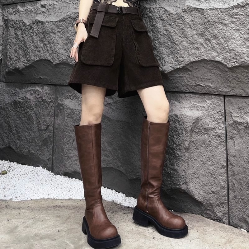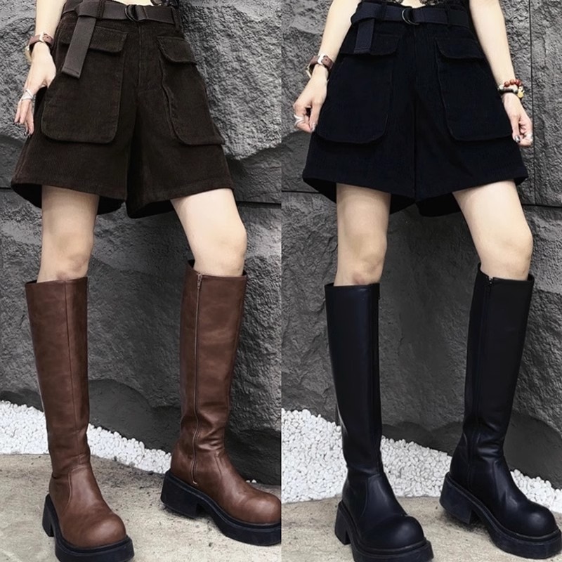气质松紧腰灯芯绒百搭阔腿靴裤秋冬女士胖mm大码宽松女士加绒短裤