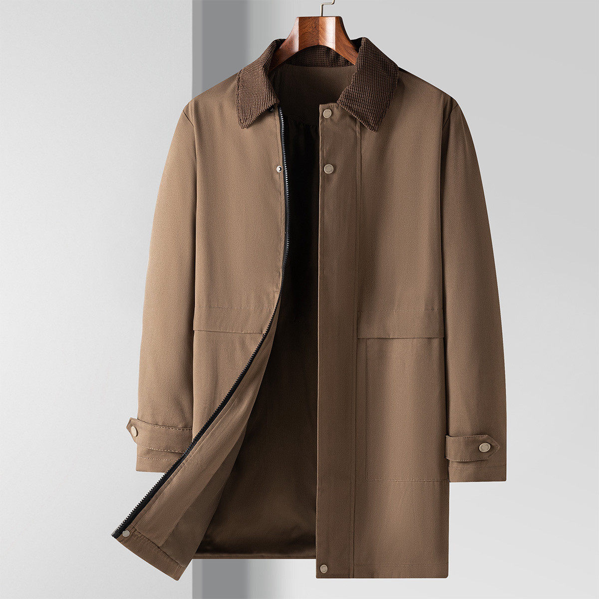 罗蒙灯芯绒领中长款商务夹克风衣