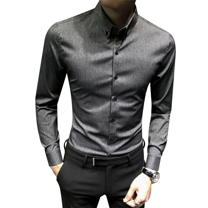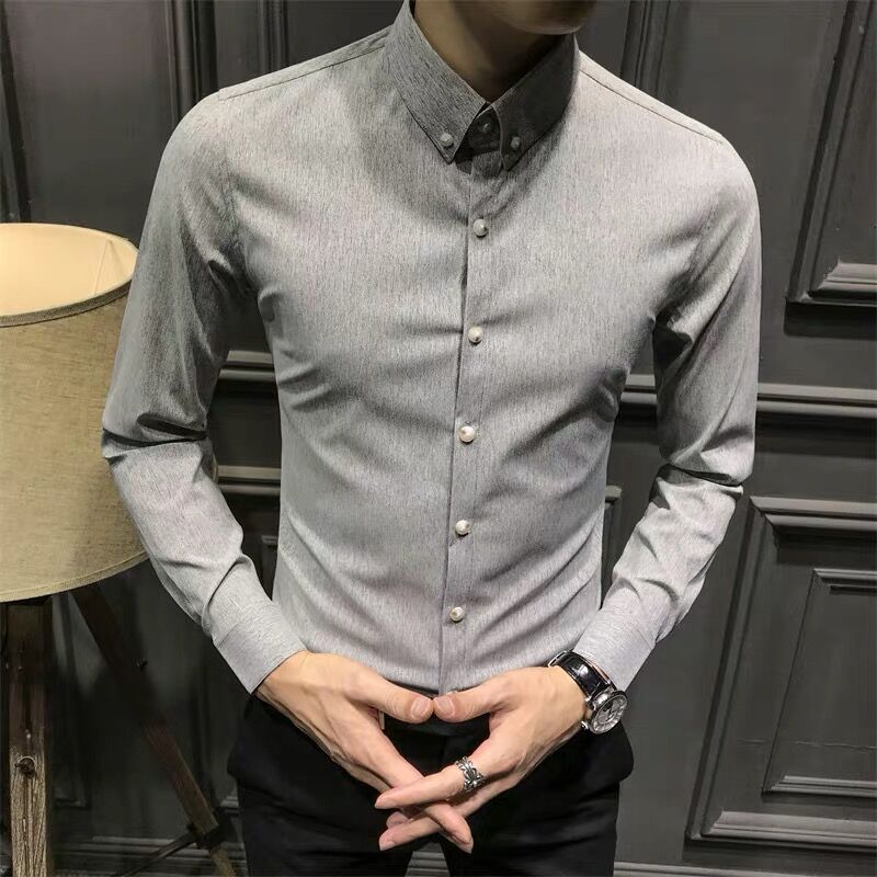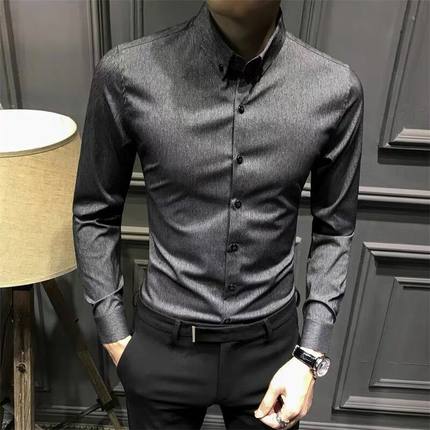 衬衫男长袖秋冬季加绒韩版潮流轻奢衬衣商务正装免烫寸衫高端上衣