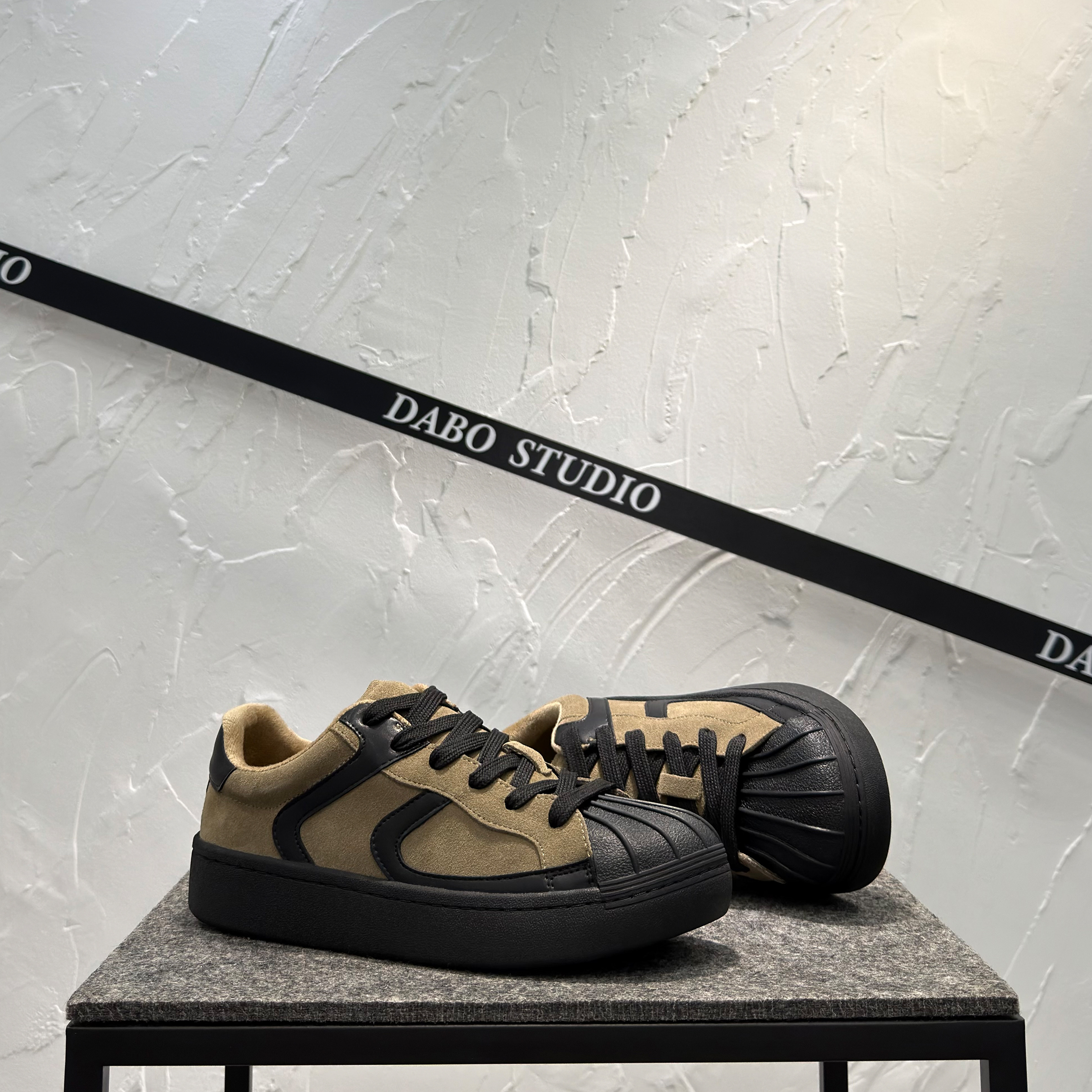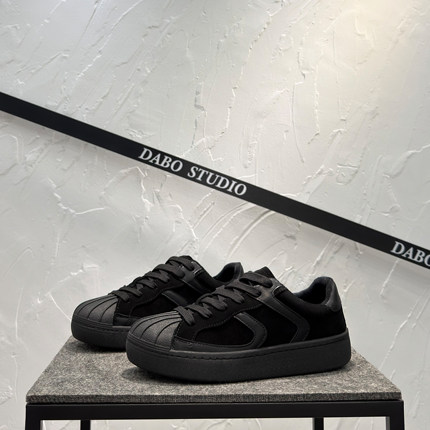 鞋子男鞋2025新款真皮贝壳头板鞋百搭潮系带低帮鞋软底运动休闲鞋