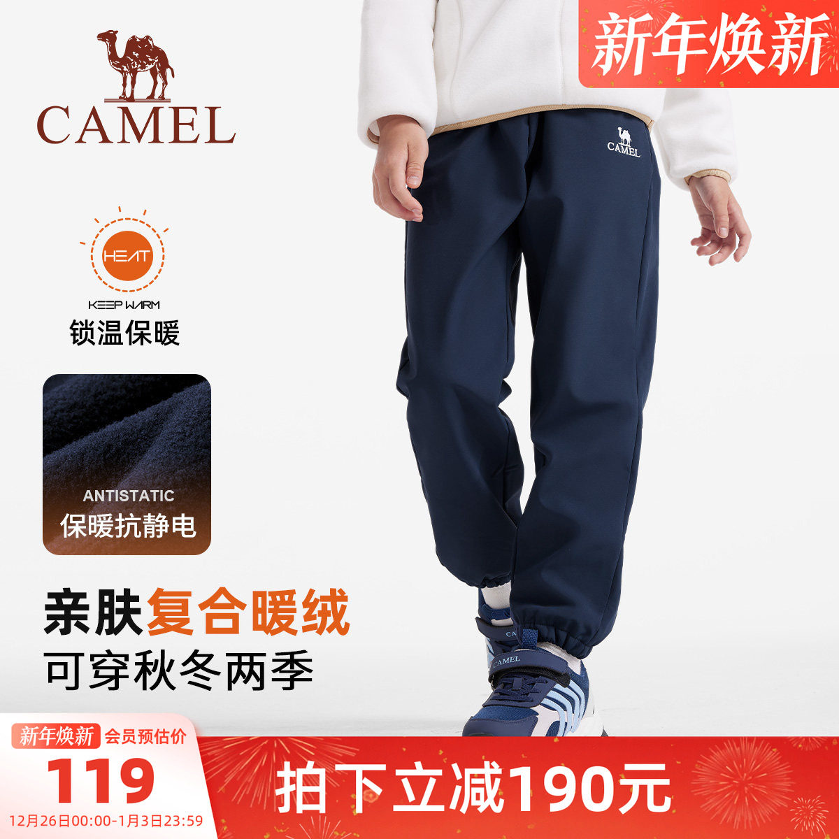 小骆驼儿童冲锋裤加绒2025新款户外男童女童休闲裤中大童软壳长裤