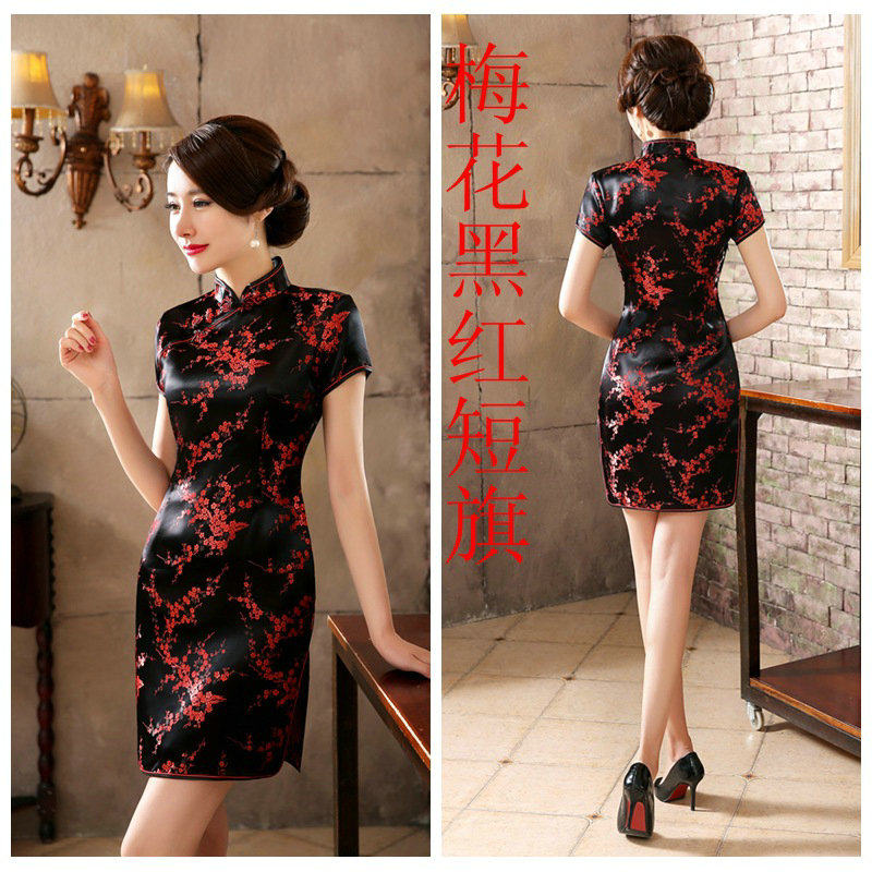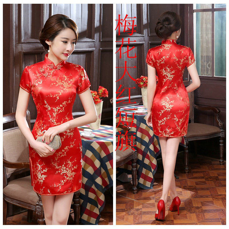 剪彩旗袍礼仪短款旗袍改良复古修身织锦缎走秀表演拍照礼服演出服