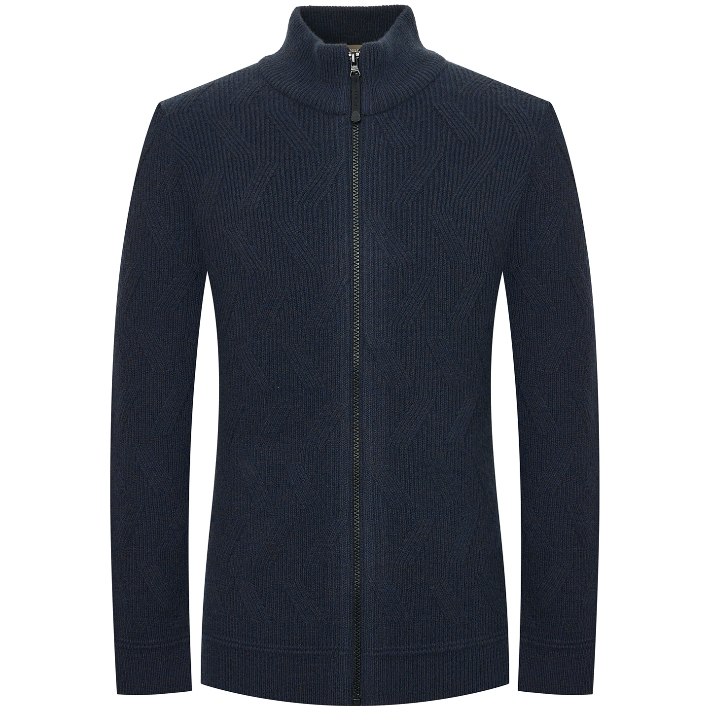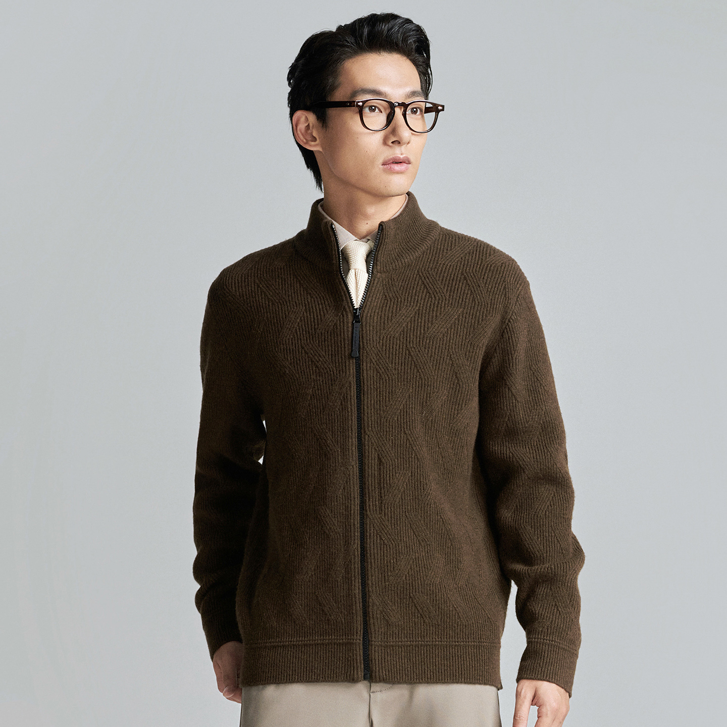 报喜鸟秋季新款男士时尚休闲开衫长袖100%羊毛衫商务两色立领毛衣