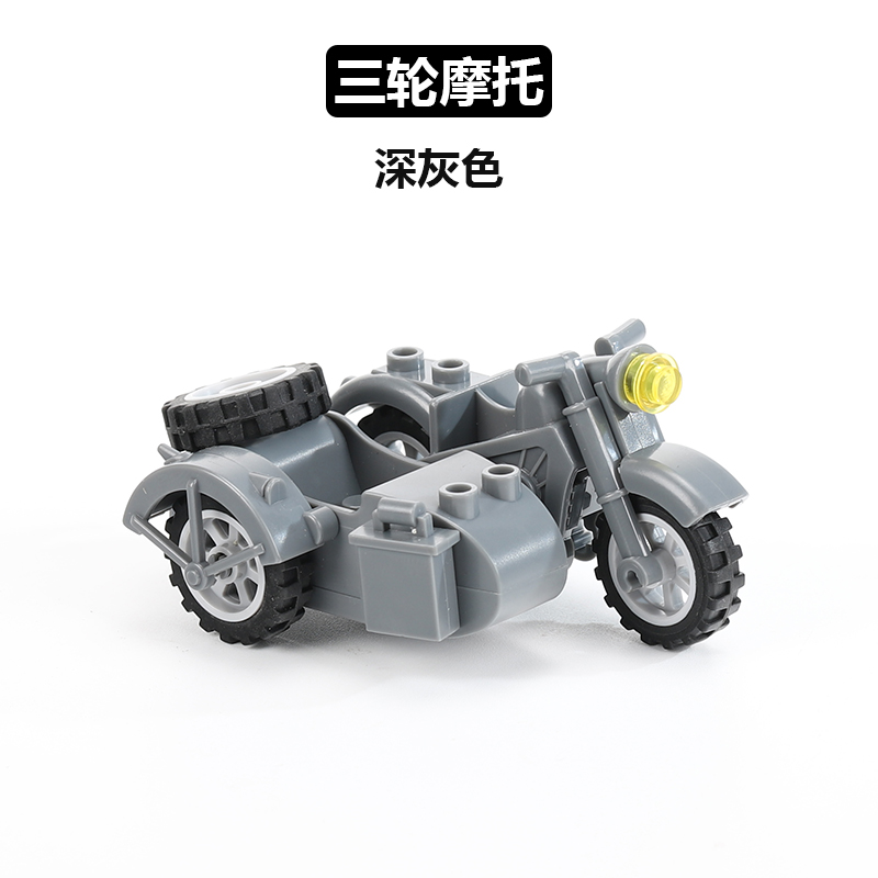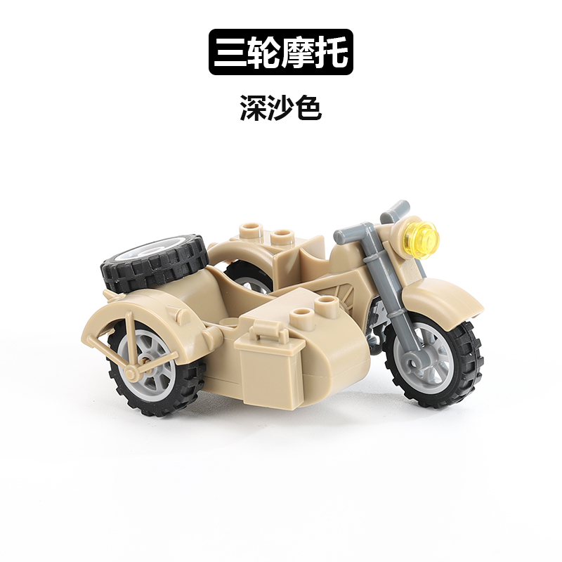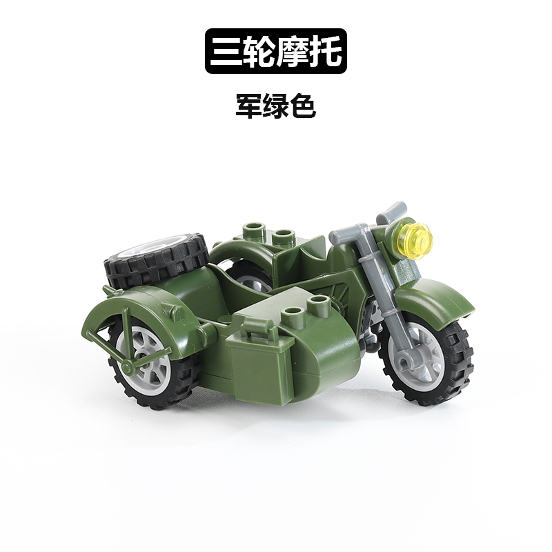 兼容益智二战人仔配件三轮摩托车军事人偶载具越野车拼装积木玩具
