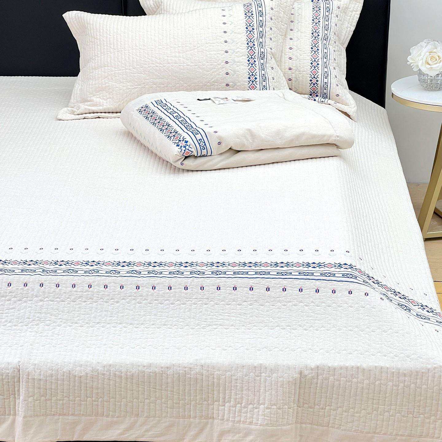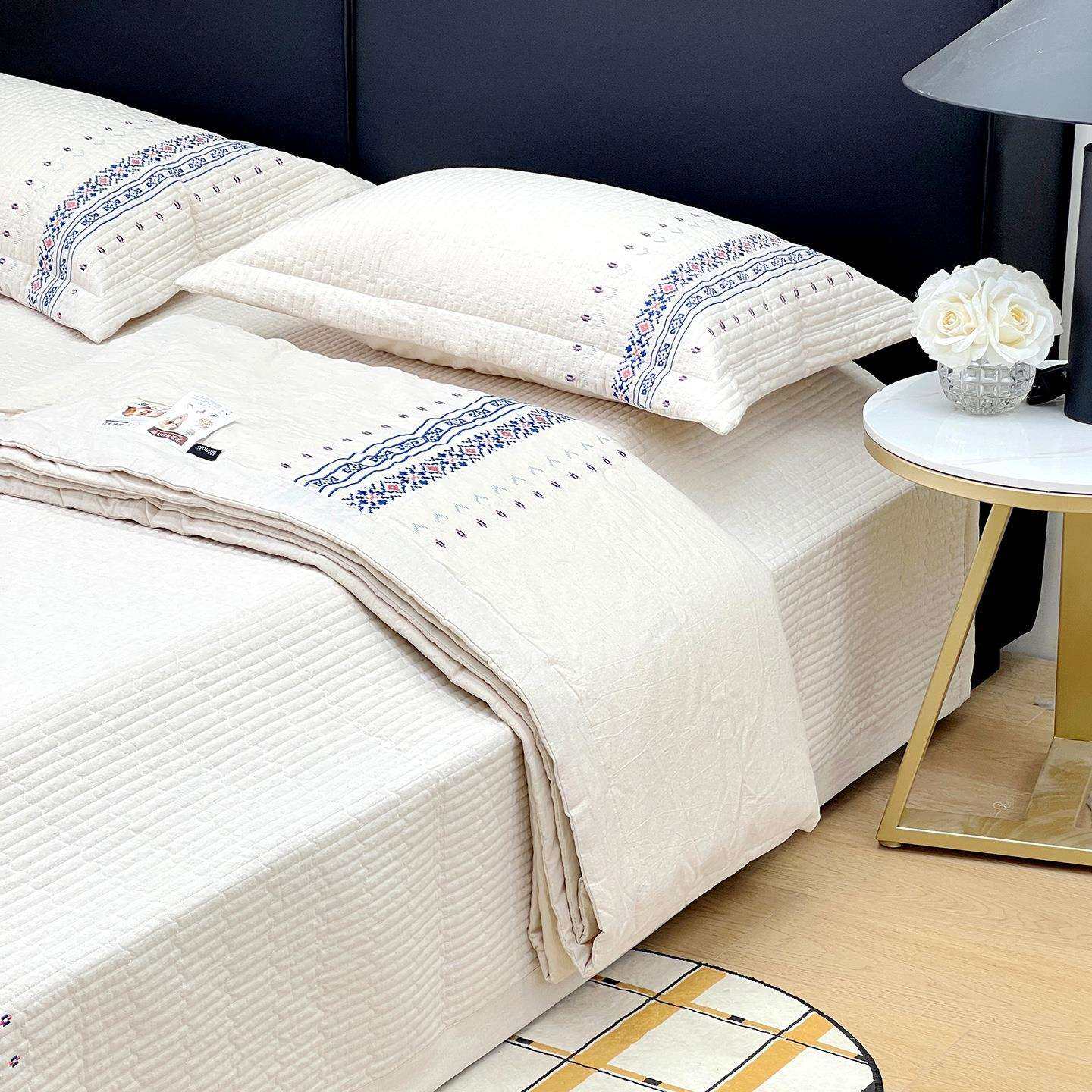 Miinotii未染系列全棉亚麻大豆夏被民宿简约床盖三件套加厚床单