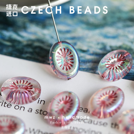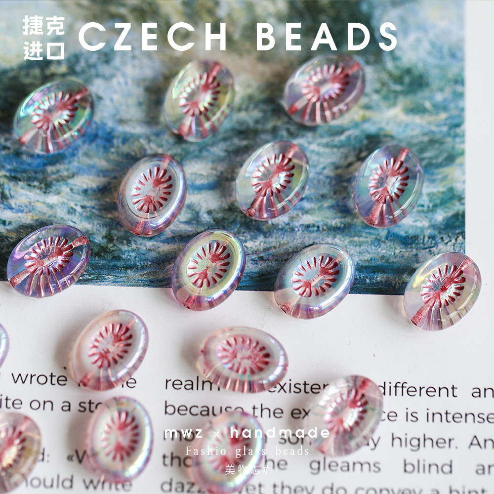 捷克进口琉璃珠Ab水晶粉色奇异果珠14*10mm串珠DIY手工饰品配件