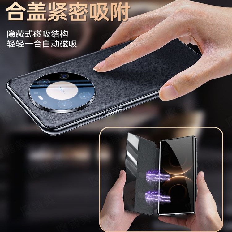 [现货秒发]适用华为mate80promax手机壳真皮磁吸翻盖mate80pro新款智能视窗保护套pro镜头全包防摔M80+高级感