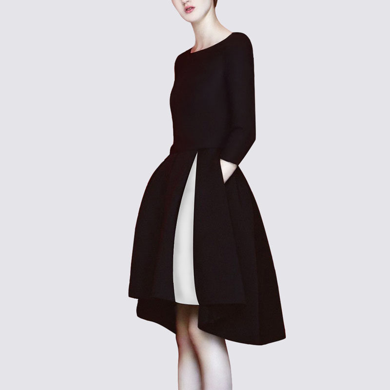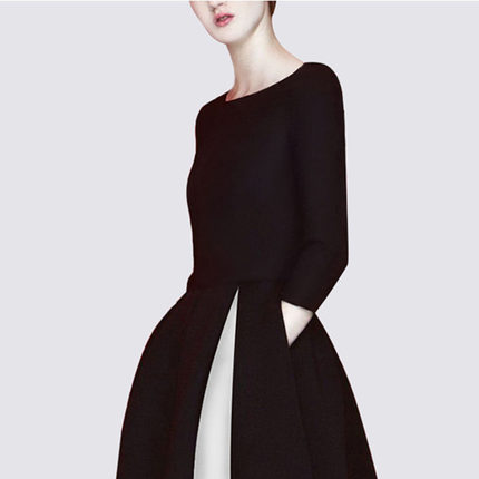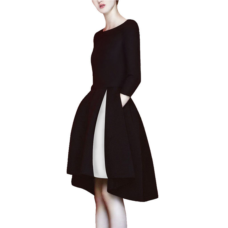 黑色礼服连衣裙2021春秋女装新款中长款收腰显瘦小黑裙子晚宴年会