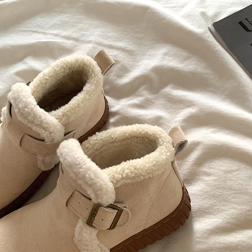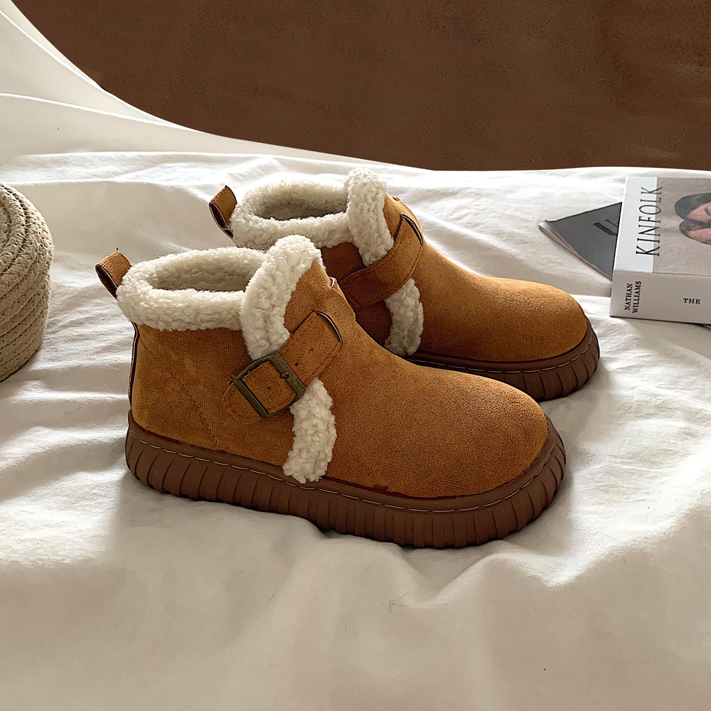 金屿鹿ins少女加绒厚底雪地靴冬季新款韩版复古保暖防滑短筒棉鞋
