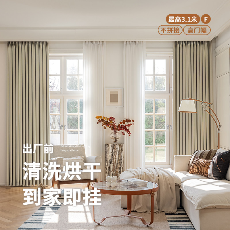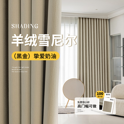卧室抗菌窗帘全遮光2024新款羊绒雪尼尔客厅阳台奶油风遮阳布飘窗
