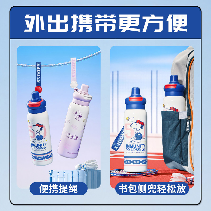 史努比保温杯吸管水杯男女小学生上学专用运动大容量316l直双饮壶