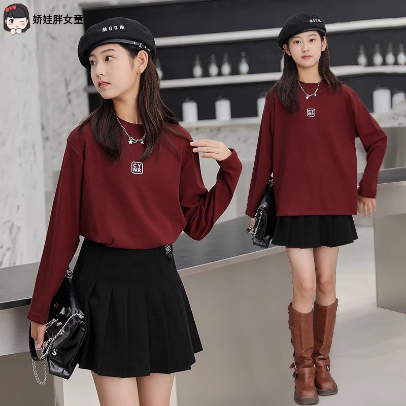 胖女童打底衫儿童春秋加肥加大偏胖女孩中大童百搭长袖T恤衫上衣8
