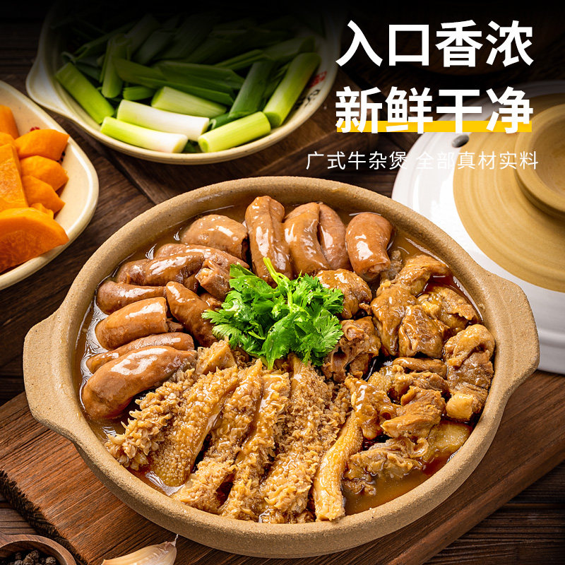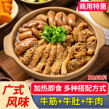 广式加热即食牛腩牛肚牛杂煲牛三鲜冷冻半成品广东预制快手菜商用