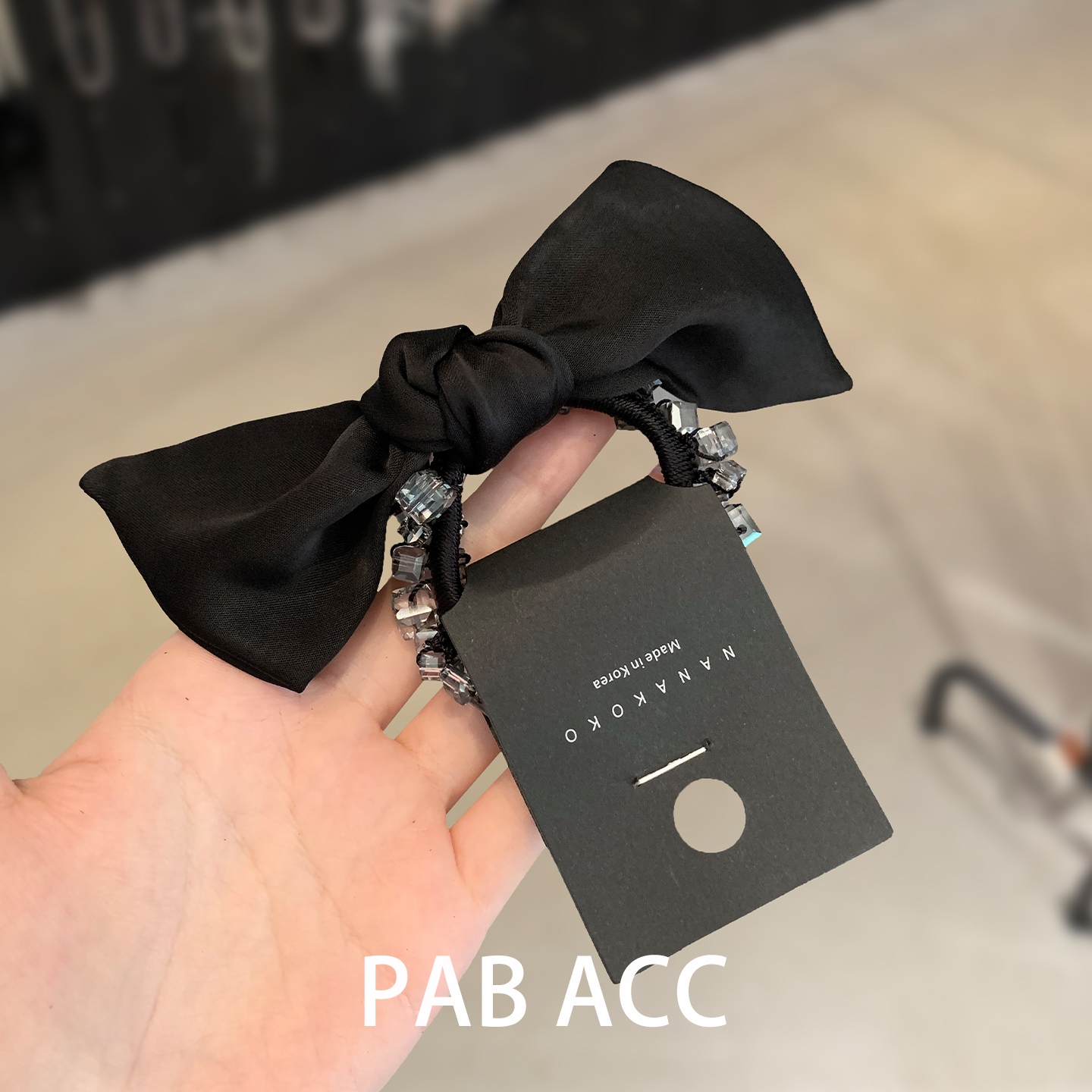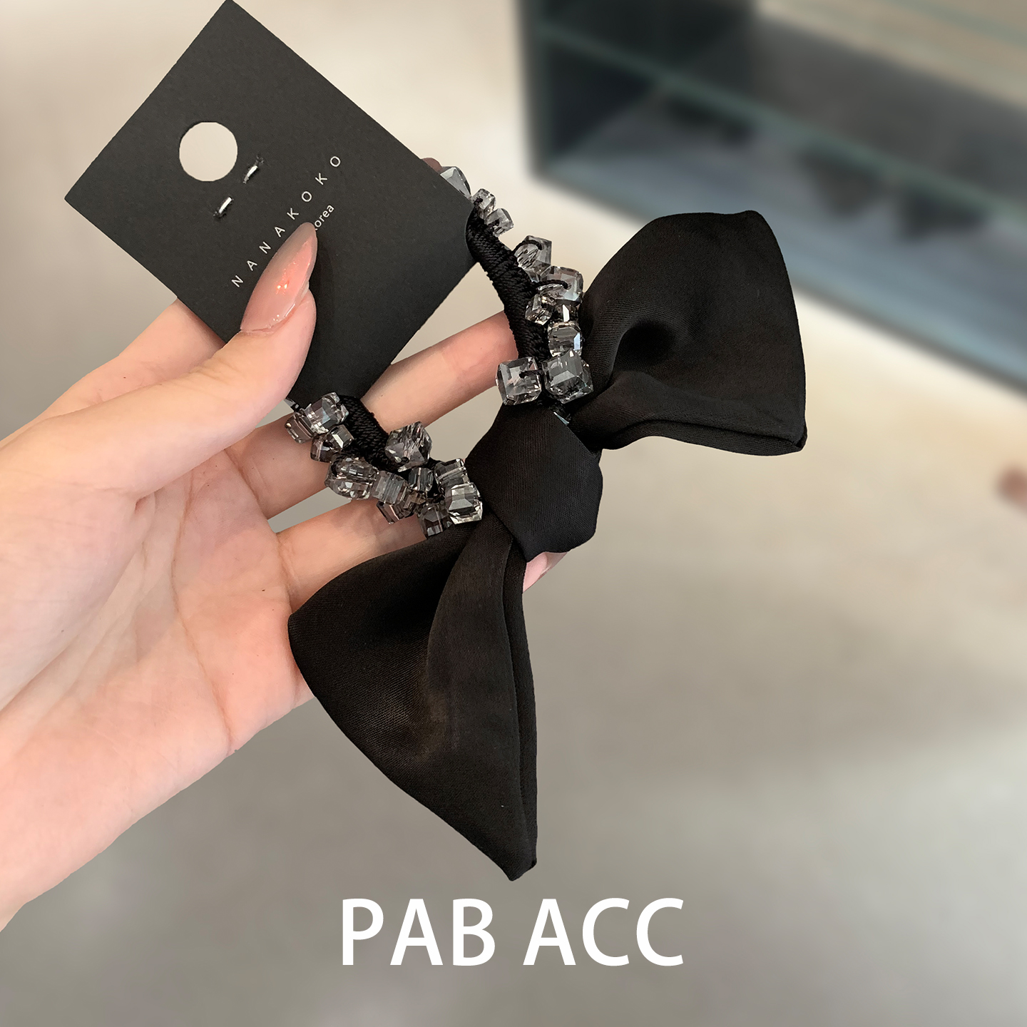 韩国小众新款设计感百搭黑色缎面蝴蝶结水晶发绳通勤扎发皮筋发圈