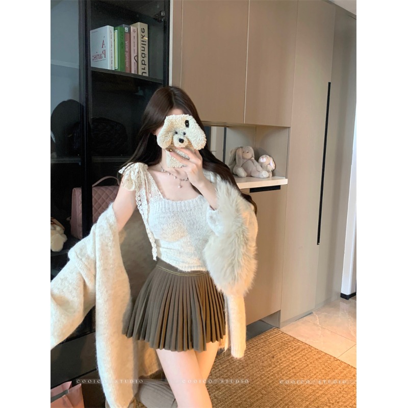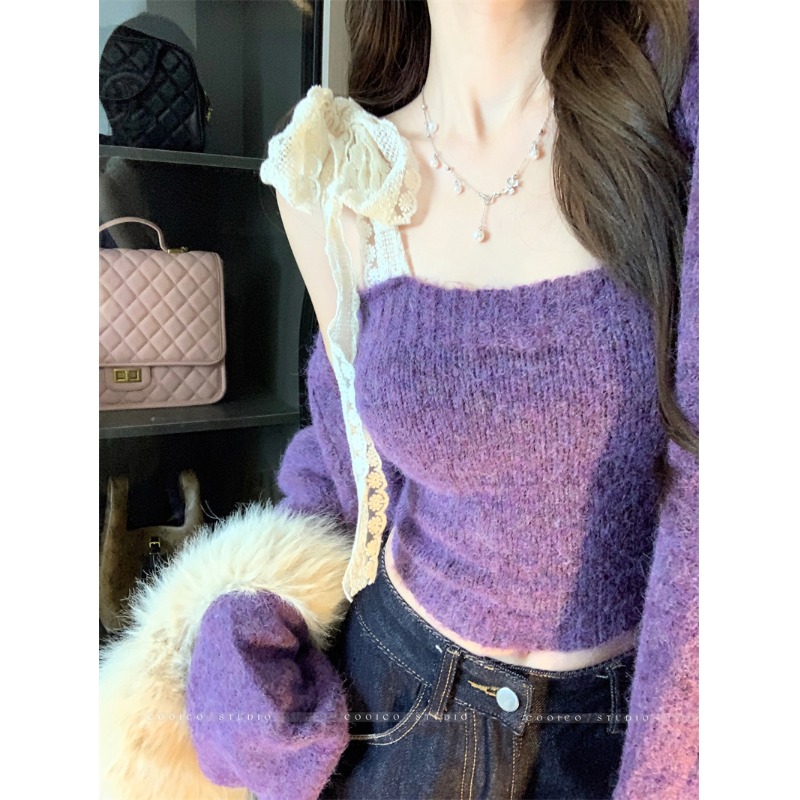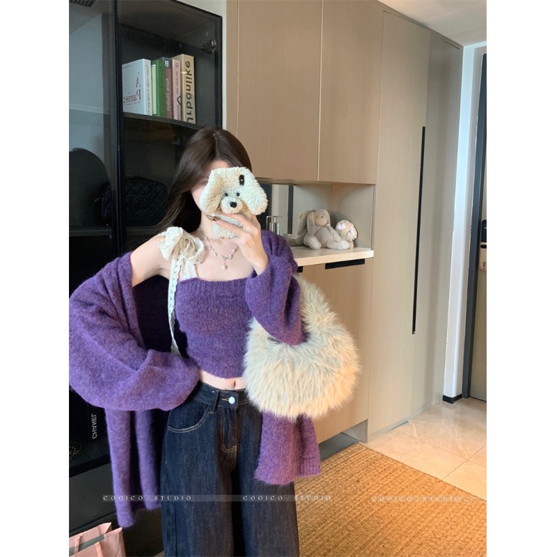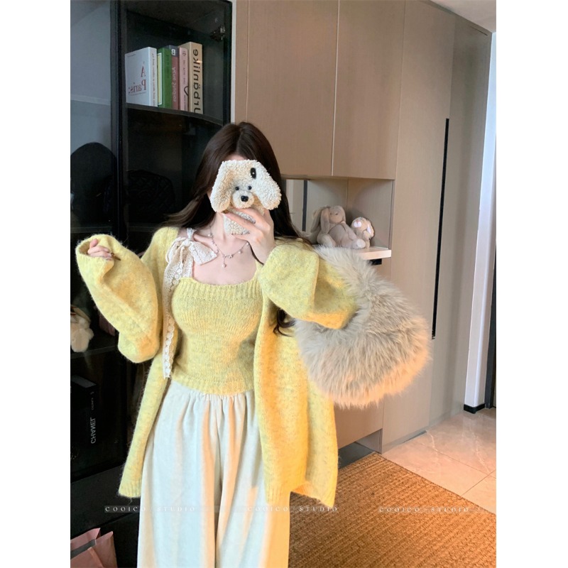 日本offcat宽松慵懒风软糯中长款毛衣外套女秋季温柔休闲外搭针织