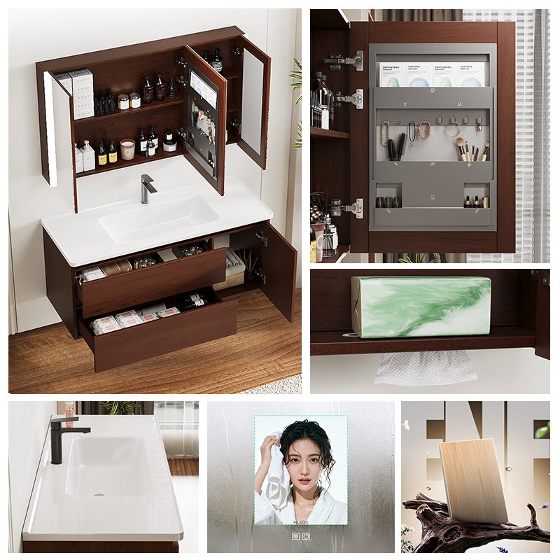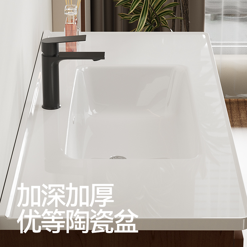 惠达中古风浴室柜组合陶瓷一体盆洗脸盆柜卫生间胡桃木洗漱台新款