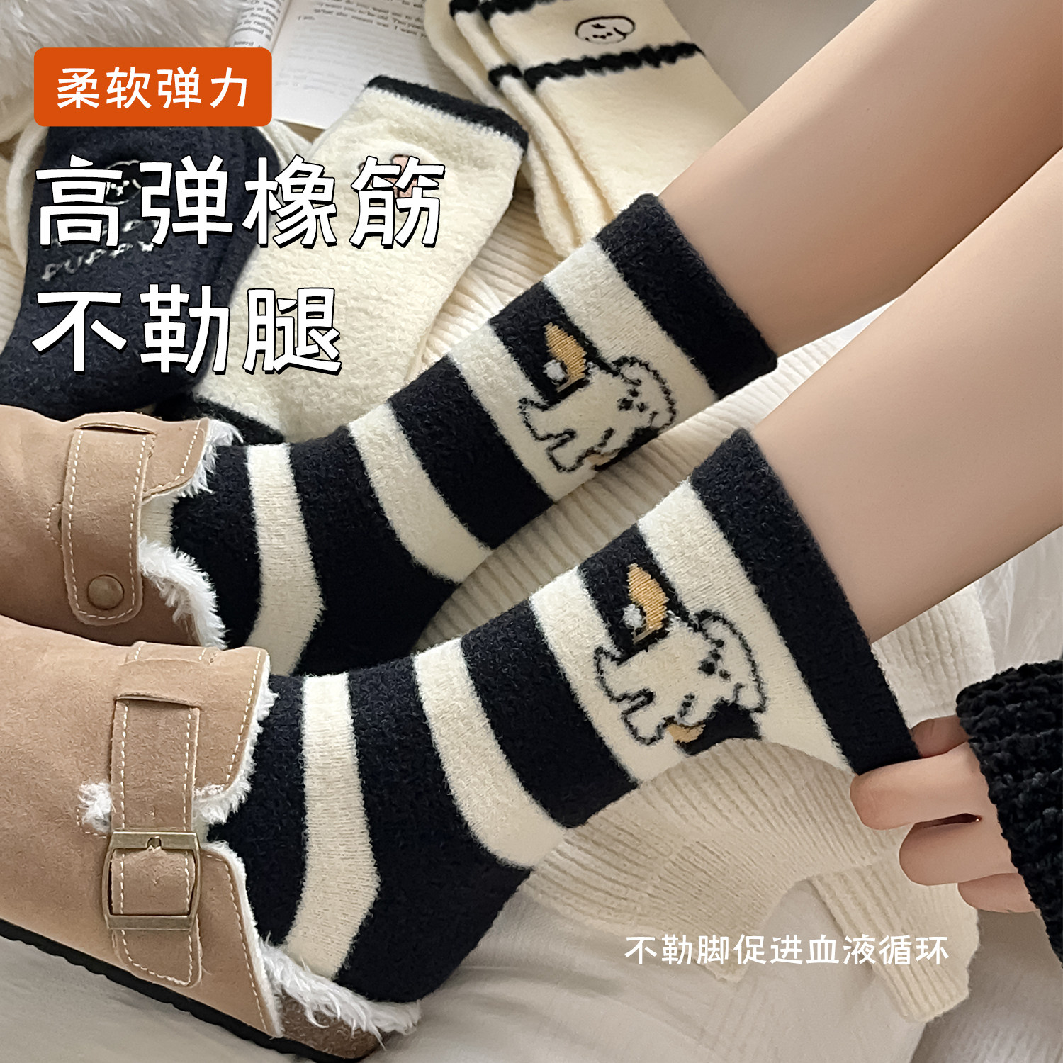 澳绒袜子女秋冬季中筒袜保暖加厚