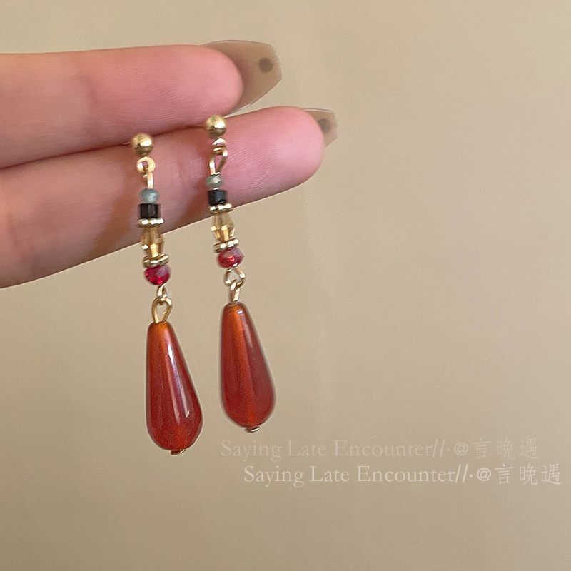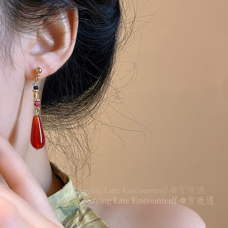 2026新款爆款高级感红色水滴流苏耳环女复古国风耳坠汉服旗袍耳饰
