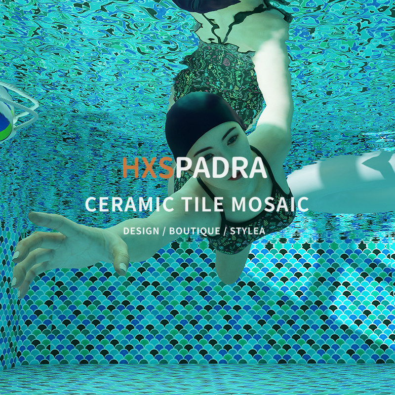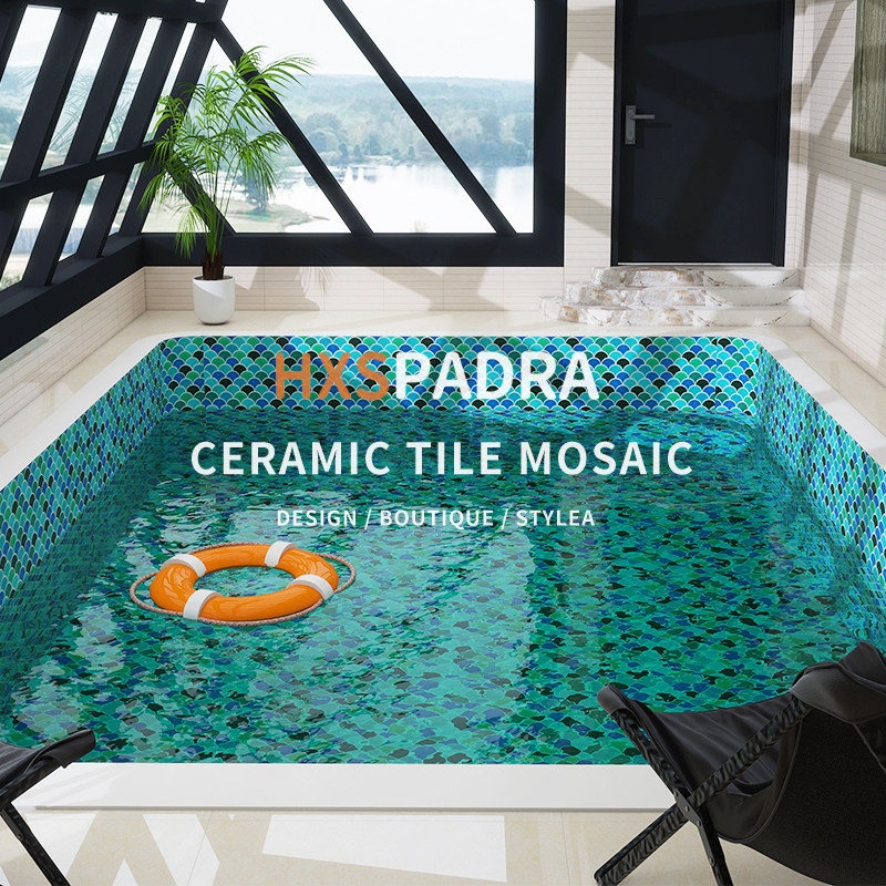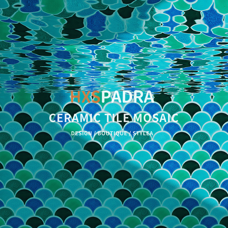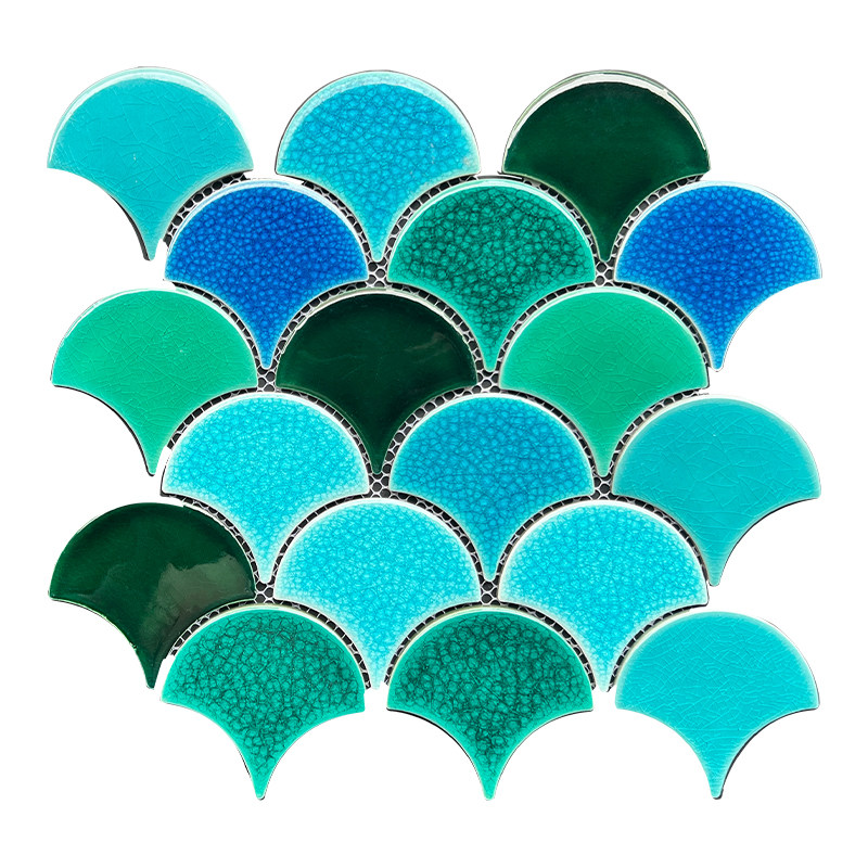 潘多拉网红鱼鳞砖冰裂扇形马赛克绿蓝色泳池浴泡池水池背景墙瓷砖
