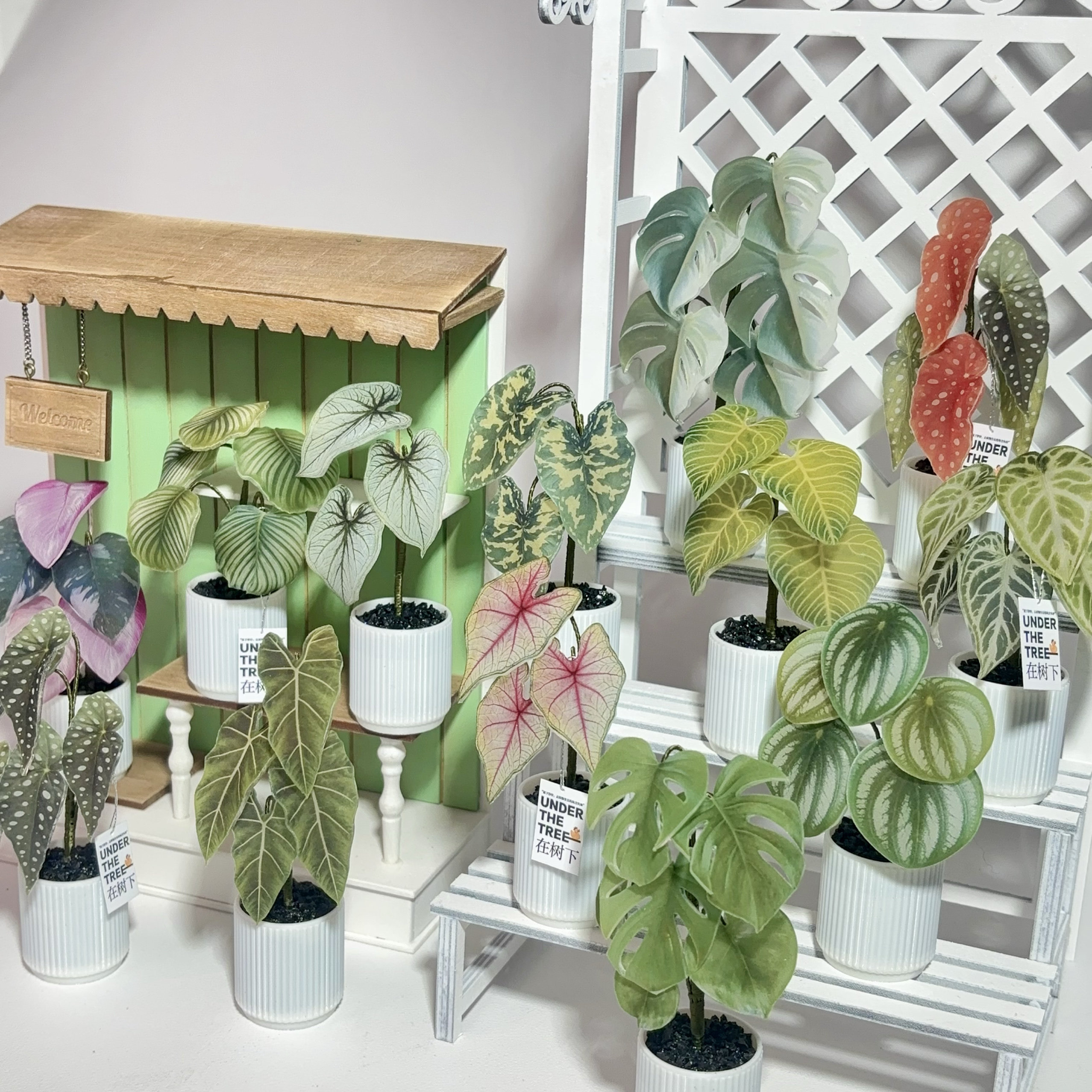 娃娃屋配件仿真秋海棠龟背竹苹果芋盆栽微缩绿植模型摆设拍摄道具