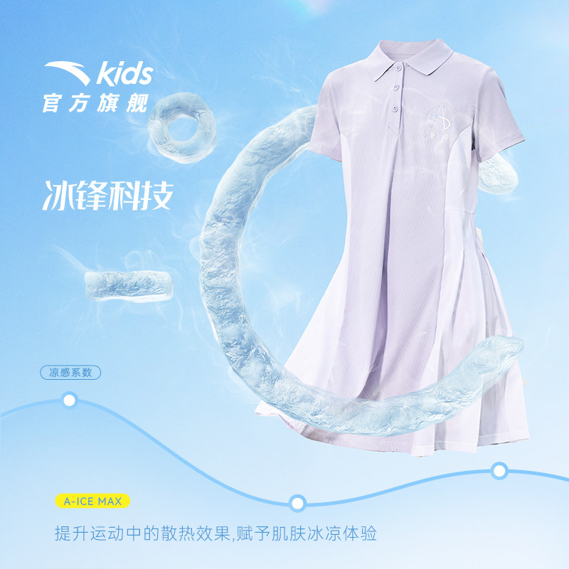 安踏儿童裙子女童运动连衣裙2025夏季新款肤中大童学院风翻领裙子