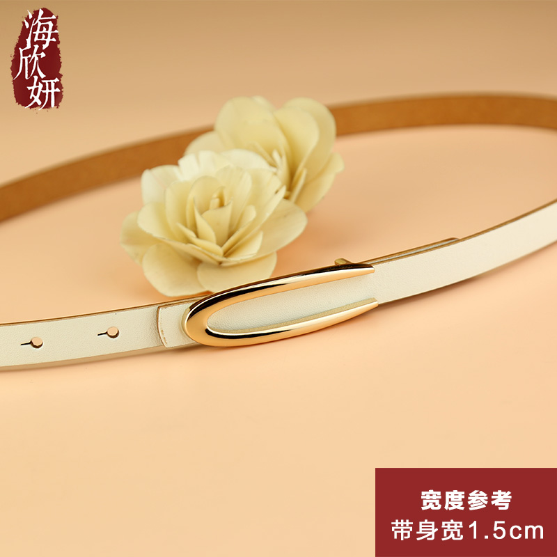 皮带女头层牛皮白色简约w百搭休闲时尚腰带细装饰配裙热卖