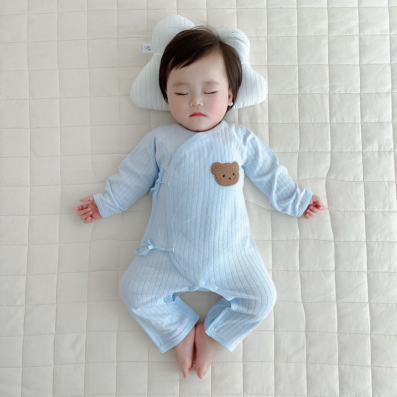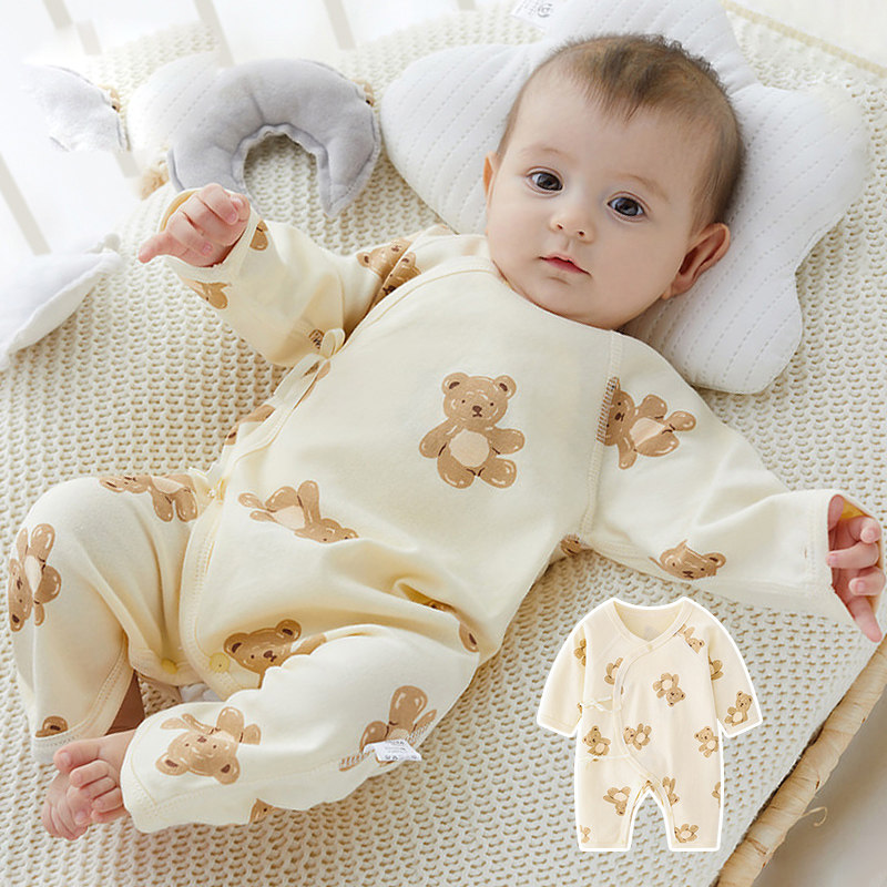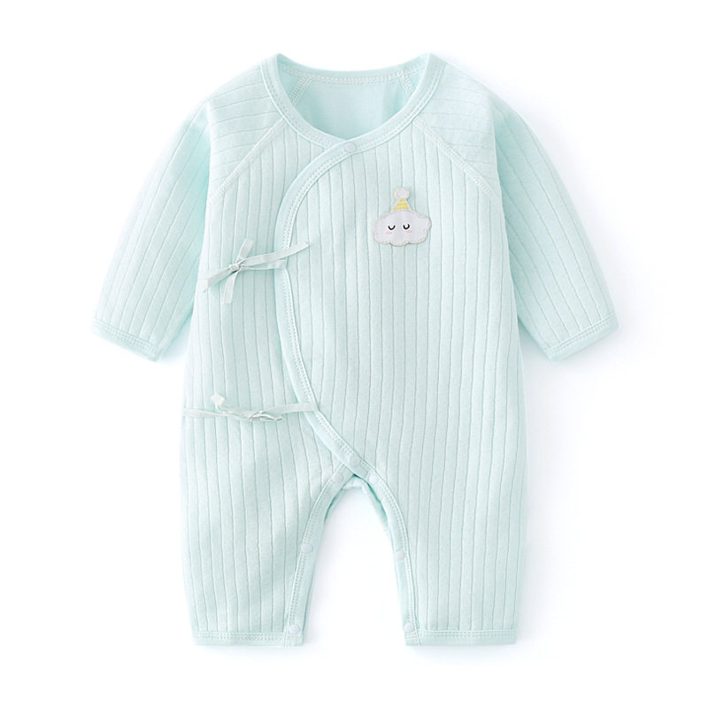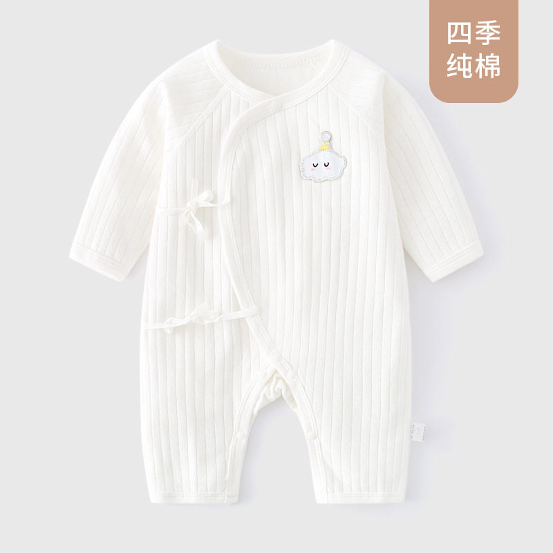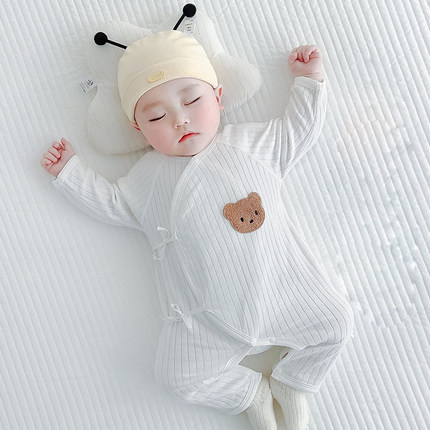 新生婴儿连体衣纯棉春秋初生宝宝和尚服长袖蝴蝶哈衣偏襟护肚四季