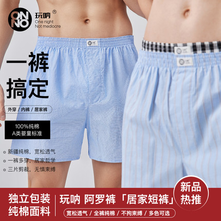 【2色】阿罗裤ONNO玩呐平角裤衩男士内裤纯棉居家短裤宽松加大码