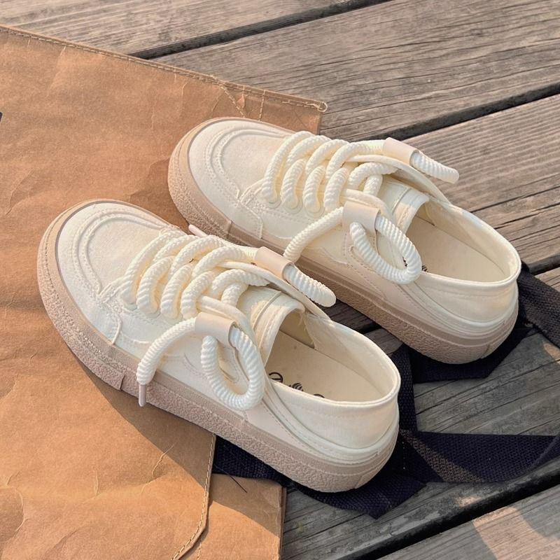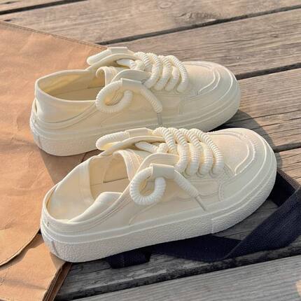 春秋季帆布鞋女两穿懒人鞋一脚蹬半拖小众原创百搭小白鞋配裙子女