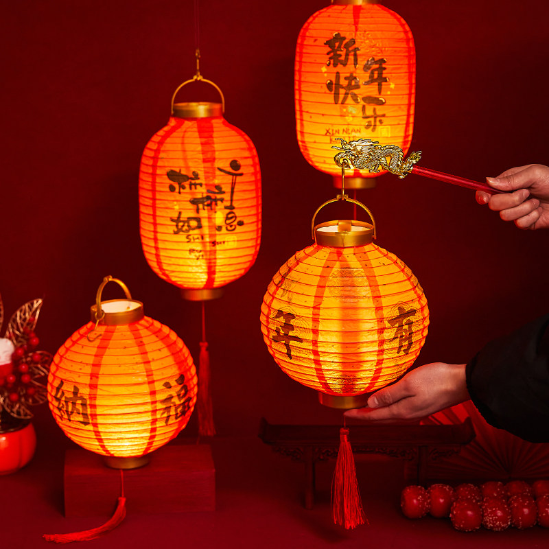 2026元宵节新款儿童手提福字发光灯笼挂饰新年装饰春节拍照道具
