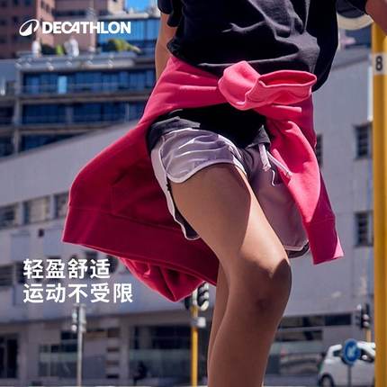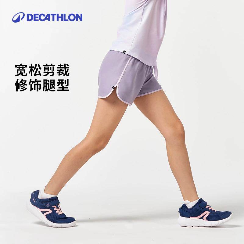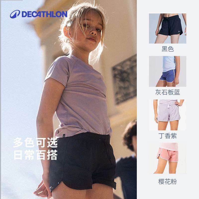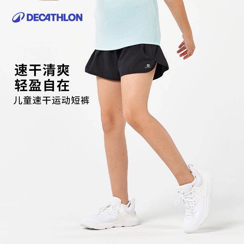 迪卡侬女童短裤夏季儿童装夏快干透气舒适黑色宽松休闲裤KIDC