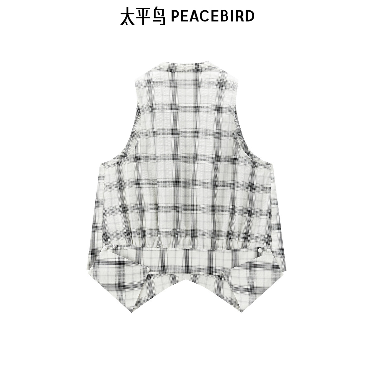 太平鸟夏季纯棉V领不规则无袖衬衫格纹套装A1CDF2742