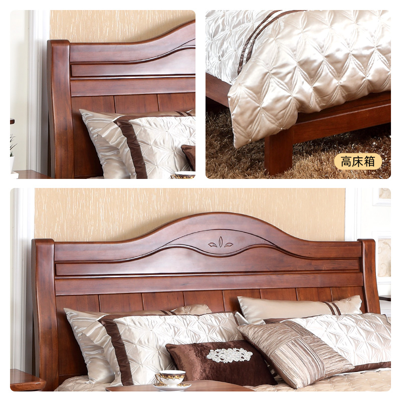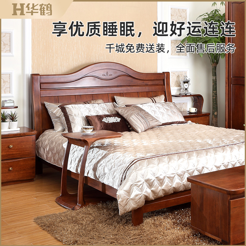 华鹤家具实木双人大床现代实木中式简约主卧双人大床元宝床1.8米