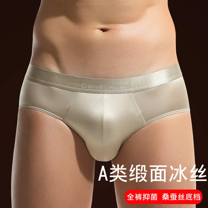 北山湖轻奢缎面男士冰丝三角内裤男桑蚕丝内裆男生夏季白色vckv