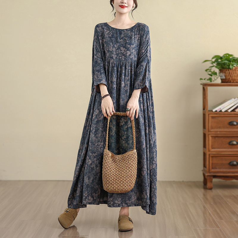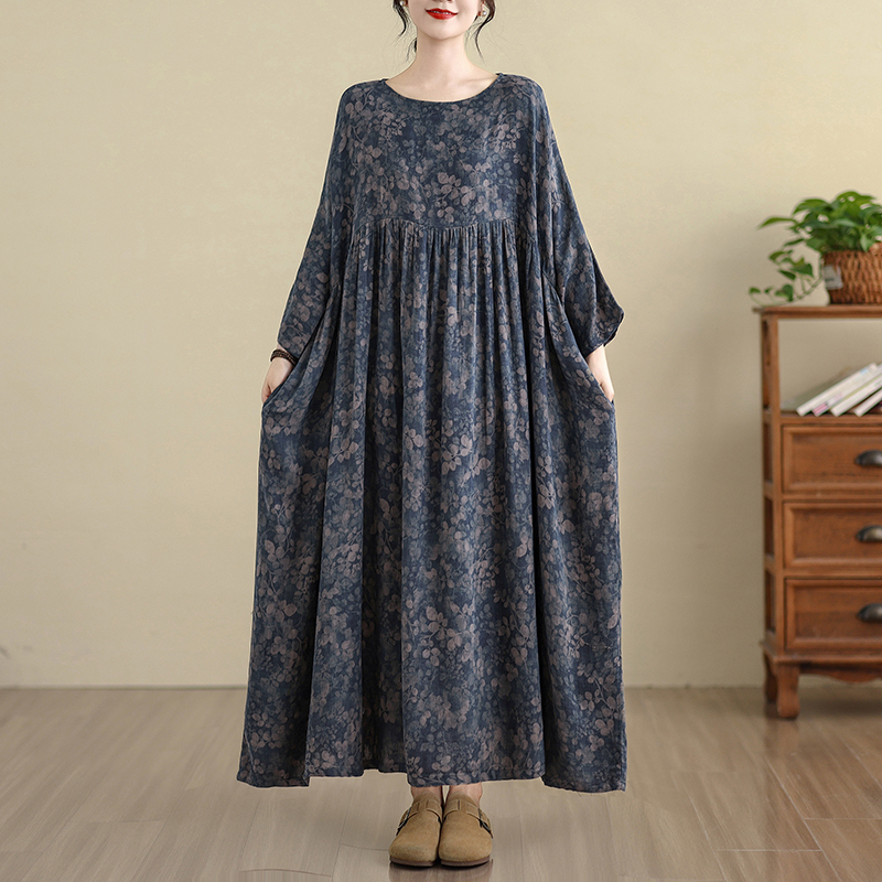 折扣捡漏长袖大码可穿200斤复古百搭数码印花加厚长裙棉麻连衣裙