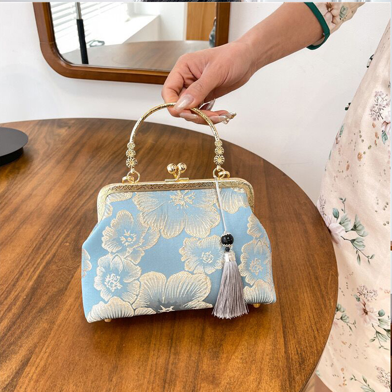 古风汉服旗袍包链条单肩手机包原创手工宴会包时尚金口手提小包包
