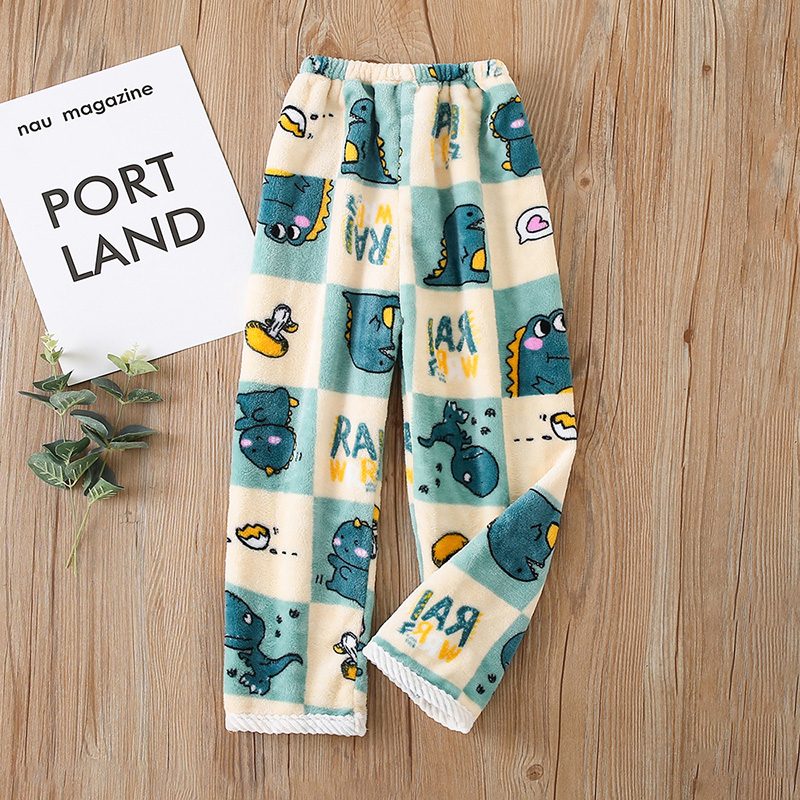 儿童法兰绒男女孩加绒加厚保暖睡裤秋冬季珊瑚绒休闲暖暖家居裤子